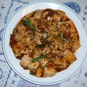 豆腐切丁、牛肉切末、干红辣椒碎、青蒜、姜末、豆瓣酱、盐、酒、花椒粉、水淀粉、酱油、糖。