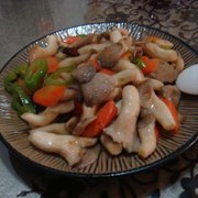 鲜蘑茹、胡萝卜、青辣椒、葱、姜、食用油、盐、生抽、十三香。