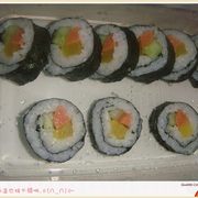 紫菜、米饭、黄瓜条、萝卜条、香肠。