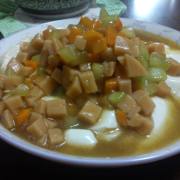 嫩豆腐、火腿、黄瓜、胡萝卜、淀粉、盐、蚝油、酱油。