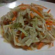金针菇、黄瓜、胡萝卜、盐、花椒粉、花椒、食用油、蒜蓉酱。