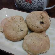低筋面粉、燕麦片、葡萄干、泡打粉、鸡蛋、葡萄籽油、细砂糖、红糖。
