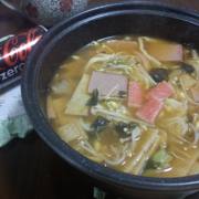 干海带、火腿、豆芽、鱼饼、金针菇、小蘑菇、葱、辣白菜。