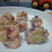 三文鱼、洋葱、白菜叶、淀粉、盐。