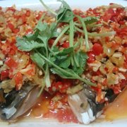 大头鱼头、泡辣椒、红辣椒、白糖、辣椒油、姜末、蒜末、葱末、醋、料酒、盐、鸡精。