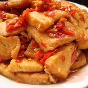 老豆腐、剁椒、盐、鸡精、姜、蒜、酱油。