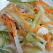 白萝卜、胡萝卜、芹菜梗、葱、姜蒜、水淀粉、盐、鸡粉、醋。