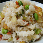 剩米饭、芹菜、青豆、鸡蛋、胡萝卜、姜、盐、鸡精。