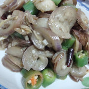 茄子、青椒、干辣椒、蒜、姜、盐、鸡精。