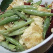 四季豆、鸡蛋、干辣椒、盐、鸡精、芝麻油、大蒜。