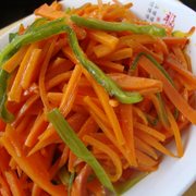 胡萝卜、辣椒、葱、生姜、料酒、盐、鸡精。