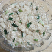 嫩豆腐、瘦肉、鸡蛋清、盐、葱、姜、嫩肉豆粉、蚝油、料酒、糊椒粉。