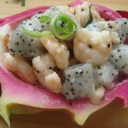 虾、火龙果、鸡蛋清、葱、生姜、淀粉。