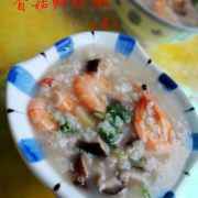 活虾、干香菇、大米、糯米、葱、香菜、姜、盐。
