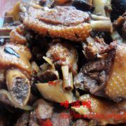 鸡腿、干香菇、土豆、花生油、蚝油、老抽、料酒、盐、姜、葱、干红椒。