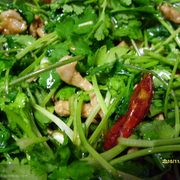 香菜、肉丝、红辣椒、酱油、鸡精、芝麻、盐。