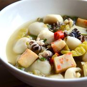 墨鱼仔、酸菜、鱼丸、鱼豆腐、葱、姜、泡椒、小米椒、盐、料酒、白胡椒粉。