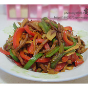 猪后腿肉、杏鲍菇、青红椒、蒜瓣、盐、糖、老抽、花生油。