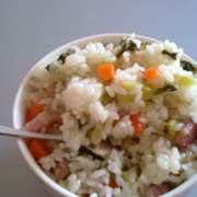 米、青菜、胡萝卜、咸肉、盐、鸡精。