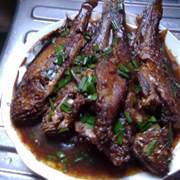 小黄鱼、大蒜叶油、盐、酱油、糖、鸡精。
