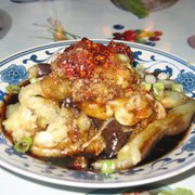 茄子、辣椒油、蒜粒、小葱、醋、酱油、白糖、味精、香油、花椒油。