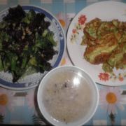 芹菜叶子、鸡蛋、干面粉、盐、油。