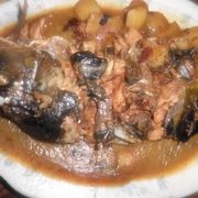三道鳞鱼、土豆、葱、蒜、蒜、酱油、醋、油、盐、鸡精、干辣椒、清水。