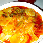 酸辣泡菜、年糕、葱碎、姜碎、蒜碎、鸡精。