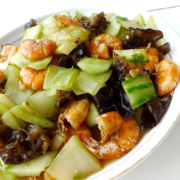 黄瓜、大青虾、木耳、葱碎、姜碎、蒜碎、料酒、蚝油、盐、鸡精。
