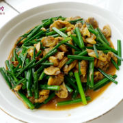 冷冻花蛤肉、韭苔、葱姜蒜、料酒、蚝油、盐。