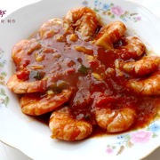 大番茄、大青虾、姜、蒜、葱、料酒、生抽、蚝油、盐、白糖、鸡精、水淀粉。