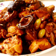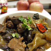 泰山松蘑、粉皮、柴鸡、干红辣椒、葱段姜片、料酒、老抽、蚝油、盐、味精。