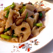 莲藕、蒜苗、猪里脊肉、葱、料酒、蚝油、盐、姜、蒜。