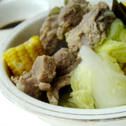 甜玉米、大白菜、干海带、排骨、料酒、葱段、姜片、盐、鸡精。