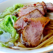 面条、自制熟卤牛肉、大白菜叶、葱花。
