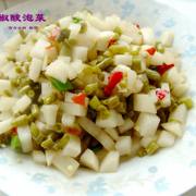 自制腌酸豆角、自制腌酸白萝卜、剁椒、葱姜。