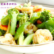 西兰花、虾仁、腰果、青椒、胡萝卜、西红柿。