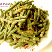 豇豆、大蒜、麻汁、香醋、生抽、盐、味精。