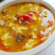 西红柿、火腿肠、鸡蛋、干香菇、榨菜丝、葱姜碎、盐、胡椒粉、味精。