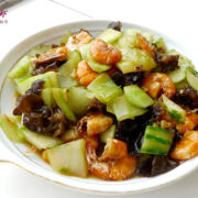 黄瓜、大青虾、木耳、葱姜蒜碎、料酒、蚝油、盐、鸡精。