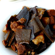 腐竹、青椒、红椒、木耳、葱、姜、熟猪肉丝。