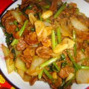 牛里脊、洋葱、香菜、蒜片、盐、辣椒粉、孜然、陈醋。