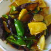 茄子,土豆、青椒、盐5克,味精5克,糖5克,蚝油。