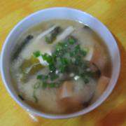 蟹腿菇、豆腐、日式味增、裙带菜、葱花。