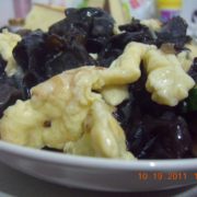 木耳、鸡蛋、黄瓜、葱、蒜、盐、淀粉、香油。