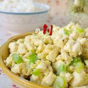 老豆腐、猪肉末、鸡蛋、香葱、姜末、盐、五香粉、鸡精。