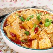 老豆腐、郫县豆瓣、葱末、姜末、白芝麻、水淀粉。