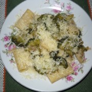 意大利通心粉、菜花、塞拉诺火腿、大蒜、大葱、芹菜、料酒、奶酪、盐。