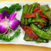 腊肠、荷兰豆、植物油、料酒、花椒粉、盐。