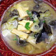 白菜、水发木耳、水发腐竹、肉、葱姜、植物油、盐、花椒粉、胡椒粉、大喜大鸡精。
